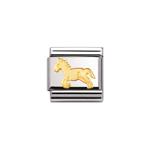 Oryginalny element do bransoletki komponowanej Nomination Composable Classic ze stali szlachetnej z koniem z 18-karatowego złota.