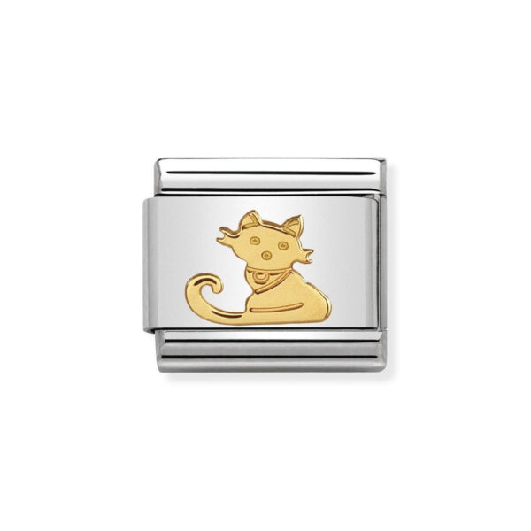 Oryginalny element do bransoletki komponowanej Nomination Composable Classic ze stali szlachetnej z siedzącym kotem z 18-karatowego złota.