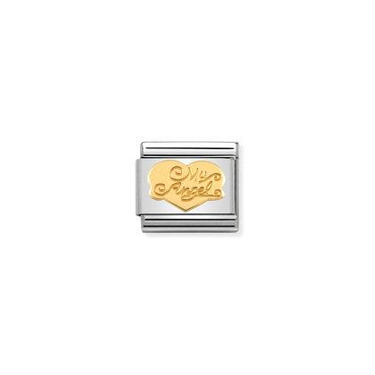 Oryginalny element do bransoletki komponowanej Nomination Composable Classic ze stali szlachetnej z symbolem serca z napisem “My Angel” z 18-karatowego złota.