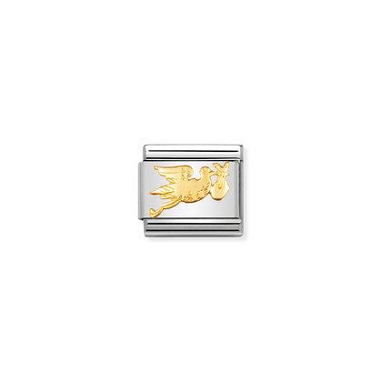Oryginalny element do bransoletki komponowanej Nomination Composable Classic ze stali chirurgicznej z symbolem lecącego bociana z 18-karatowego złota.