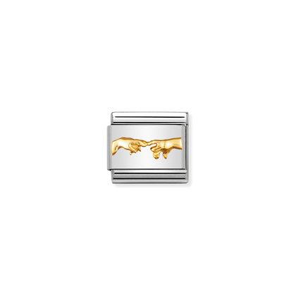 Oryginalny moduł do bransoletki komponowanej Nomination Composable Classic ze stali chirurgicznej ze słynną grafiką Michała Anioła „Stworzenie Adama” z 18-karatowego złota.