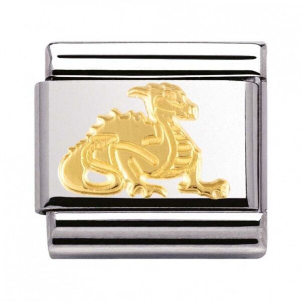 Oryginalny element do bransoletki komponowanej Nomination Composable Classic ze stali szlachetnej ze smokiem z 18-karatowego złota.