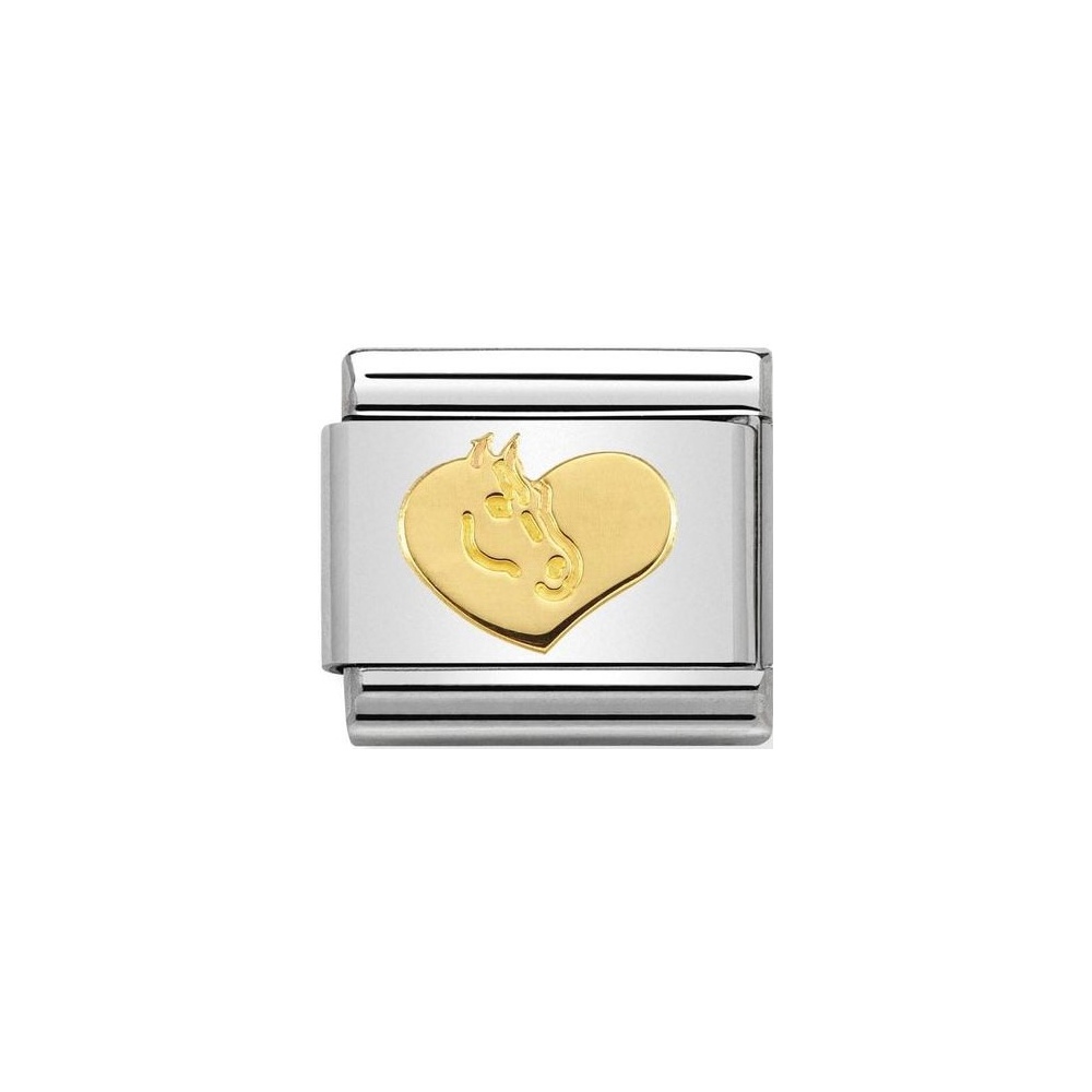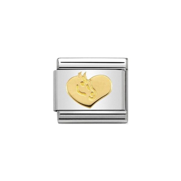 Oryginalny element do bransoletki komponowanej Nomination Composable Classic ze stali szlachetnej z głową konia w sercu z 18-karatowego złota.