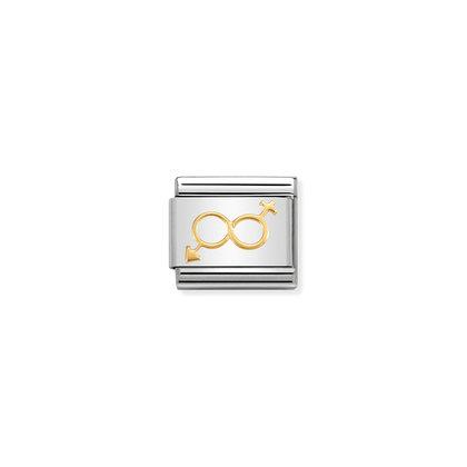 Oryginalny element do bransoletki komponowanej Nomination Composable Classic z symbolem nieskończoności, kobiety oraz mężczyzny z 18-karatowego złota.