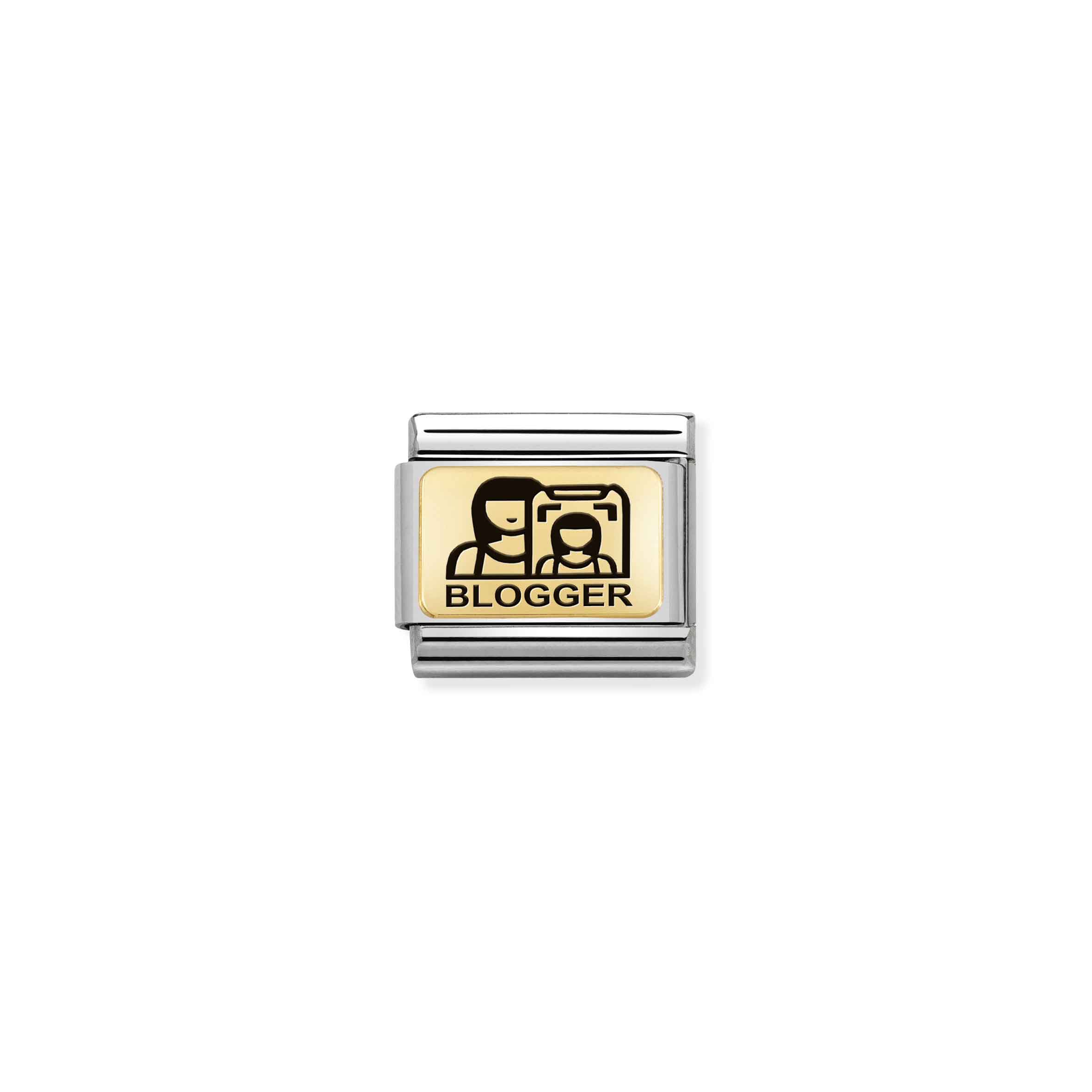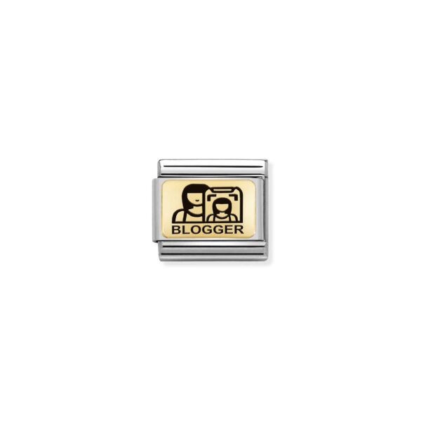 Oryginalny moduł do bransoletki komponowanej Nomination Composable Classic ze stali szlachetnej z blaszką z 18-karatowego złota i wygrawerowaną postacią bloggera oraz napisem “BLOGGER”.