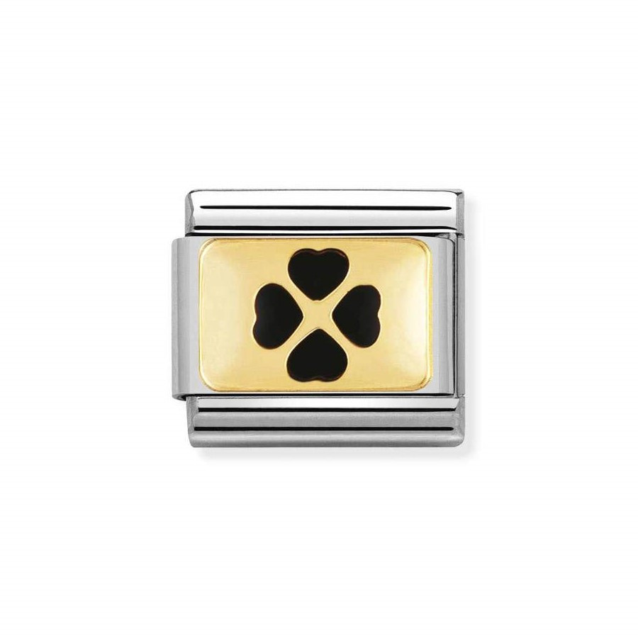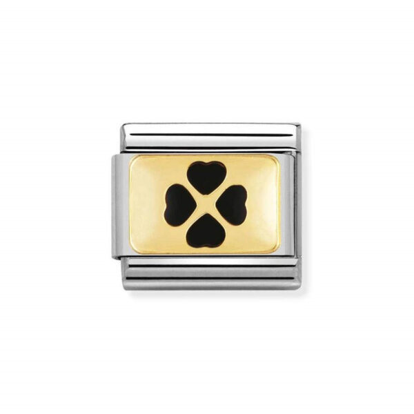 Oryginalny element do bransoletki komponowanej Nomination Composable Classic ze stali szlachetnej z symbolem czarną koniczyny z 18-karatowego złota i emalią.