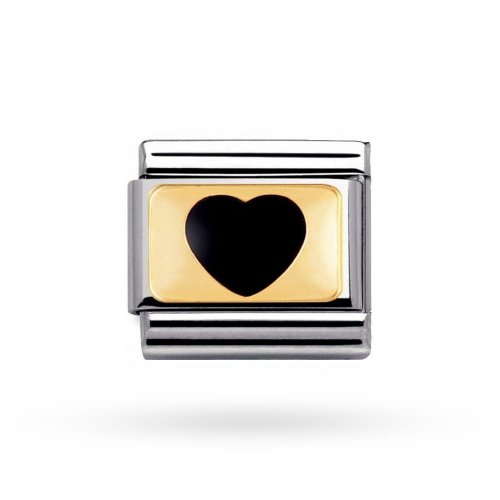 Oryginalny element do bransoletki komponowanej Nomination Composable Classic ze stali szlachetnej z symbolem czarnego serca z 18-karatowego złota i emalią.