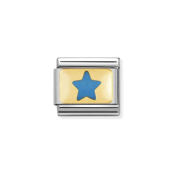 Oryginalny element do bransoletki komponowanej Nomination Composable Classic ze stali szlachetnej z symbolem niebieskiej gwiazdy z 18-karatowego złota i emalią.