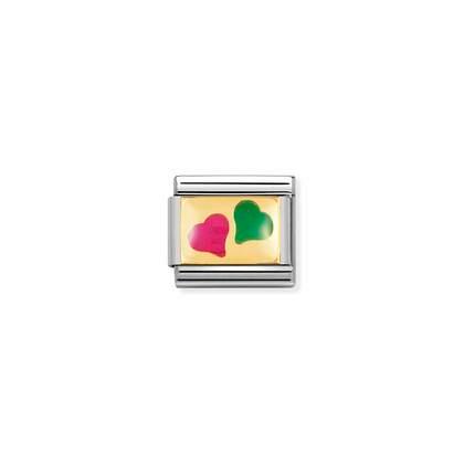 Oryginalny element do bransoletki komponowanej Nomination Composable Classic z różowym i zielonym sercem z 18-karatowego złota i emalii.