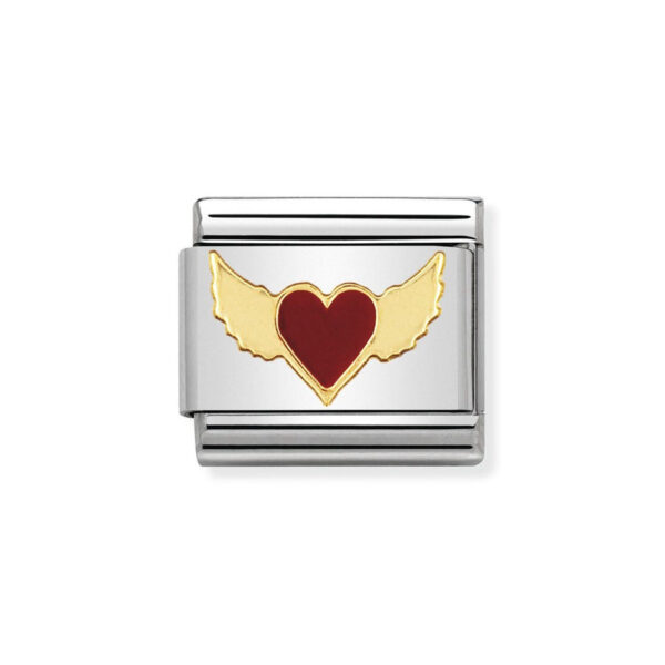 Oryginalny element do bransoletki komponowanej Nomination Composable Classic ze stali szlachetnej z symbolem czerwonego serca ze skrzydłami z 18-karatowego złota i emalią.