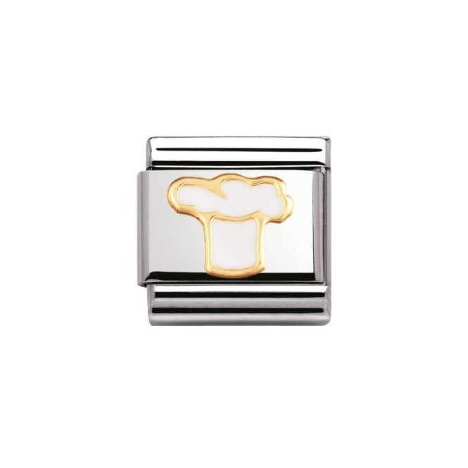 Oryginalny element do bransoletki komponowanej Nomination Composable Classic ze stali szlachetnej z symbolem czapki kucharskiej z kluczem z 18-karatowego złota i emalią.