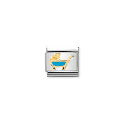 Oryginalny element do bransoletki komponowanej Nomination Composable Classic z niebieskim wózkiem dziecięcym z 18-karatowego złota i emalii.
