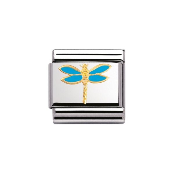 Oryginalny element do bransoletki komponowanej Nomination Composable Classic ze stali szlachetnej z niebieską ważką z 18-karatowego złota i emalią.