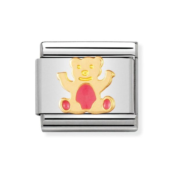 Oryginalny element do bransoletki komponowanej Nomination Composable Classic ze stali szlachetnej z różowym misiem z 18-karatowego złota i emalią.