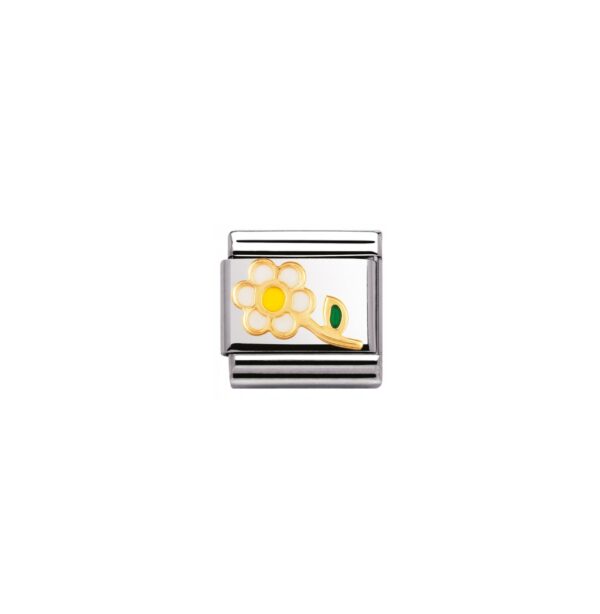 Oryginalny element do bransoletki komponowanej Nomination Composable Classic ze stali szlachetnej z kwiatem z kolorowej emalii i 18-karatowego złota.