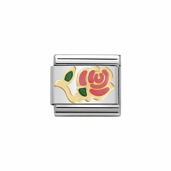 Oryginalny element do bransoletki komponowanej Nomination Composable Classic ze stali szlachetnej z symbolem róży z 18-karatowego złota i emalią.