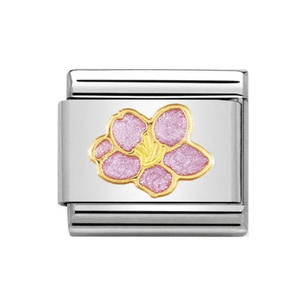 Oryginalny element do bransoletki komponowanej Nomination Composable Classic ze stali szlachetnej z symbolem hibiskusa z 18-karatowego złota i emalią.