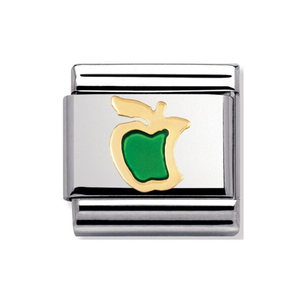 Oryginalny element do bransoletki komponowanej Nomination Composable Classic ze stali szlachetnej z zielonym jabłkiem z 18-karatowego złota i emalią.