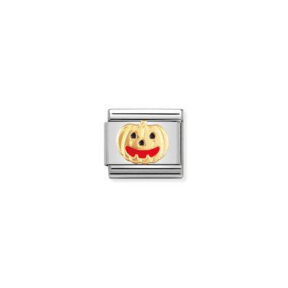 Oryginalny element do bransoletki komponowanej Nomination Composable Classic z uśmiechniętą dynią z 18-karatowego złota i kolorowej emalii.
