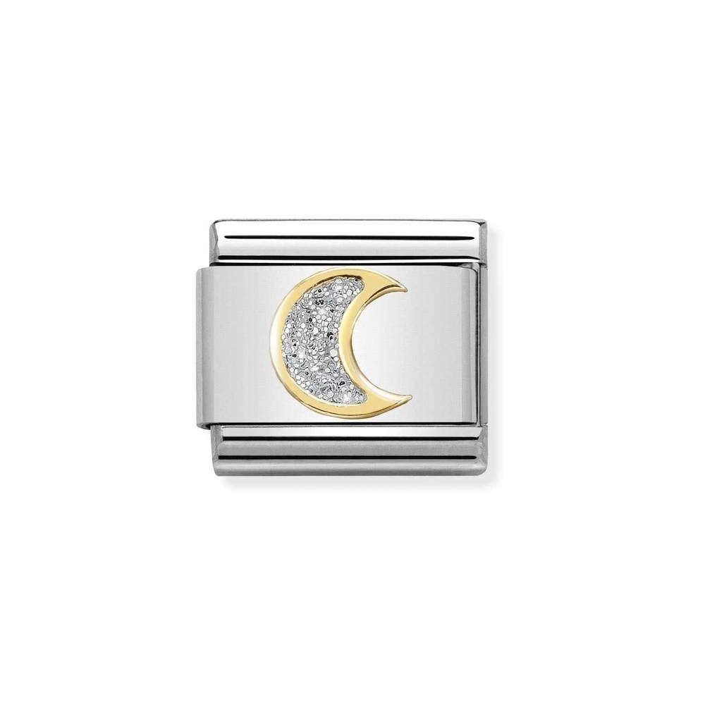 Oryginalny element do bransoletki komponowanej Nomination Composable Classic ze stali szlachetnej z brokatowym księżycem z 18-karatowego złota i emalią.