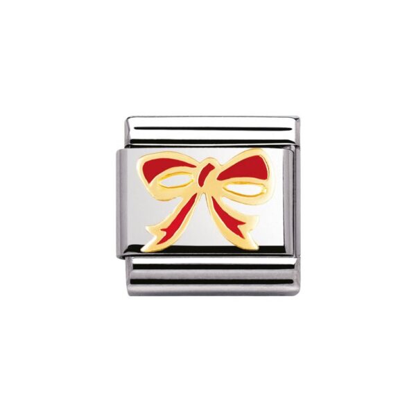 Oryginalny element do bransoletki komponowanej Nomination Composable Classic ze stali szlachetnej z czerwoną kokardą z 18-karatowego złota i emalią.