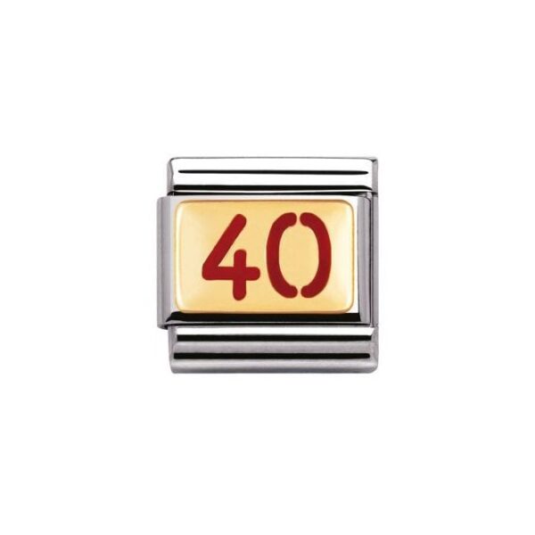 Oryginalny element do bransoletki komponowanej Nomination Composable Classic ze stali szlachetnej z cyfrą 40 w kolorze czerwonym z 18-karatowego złota i emalią.
