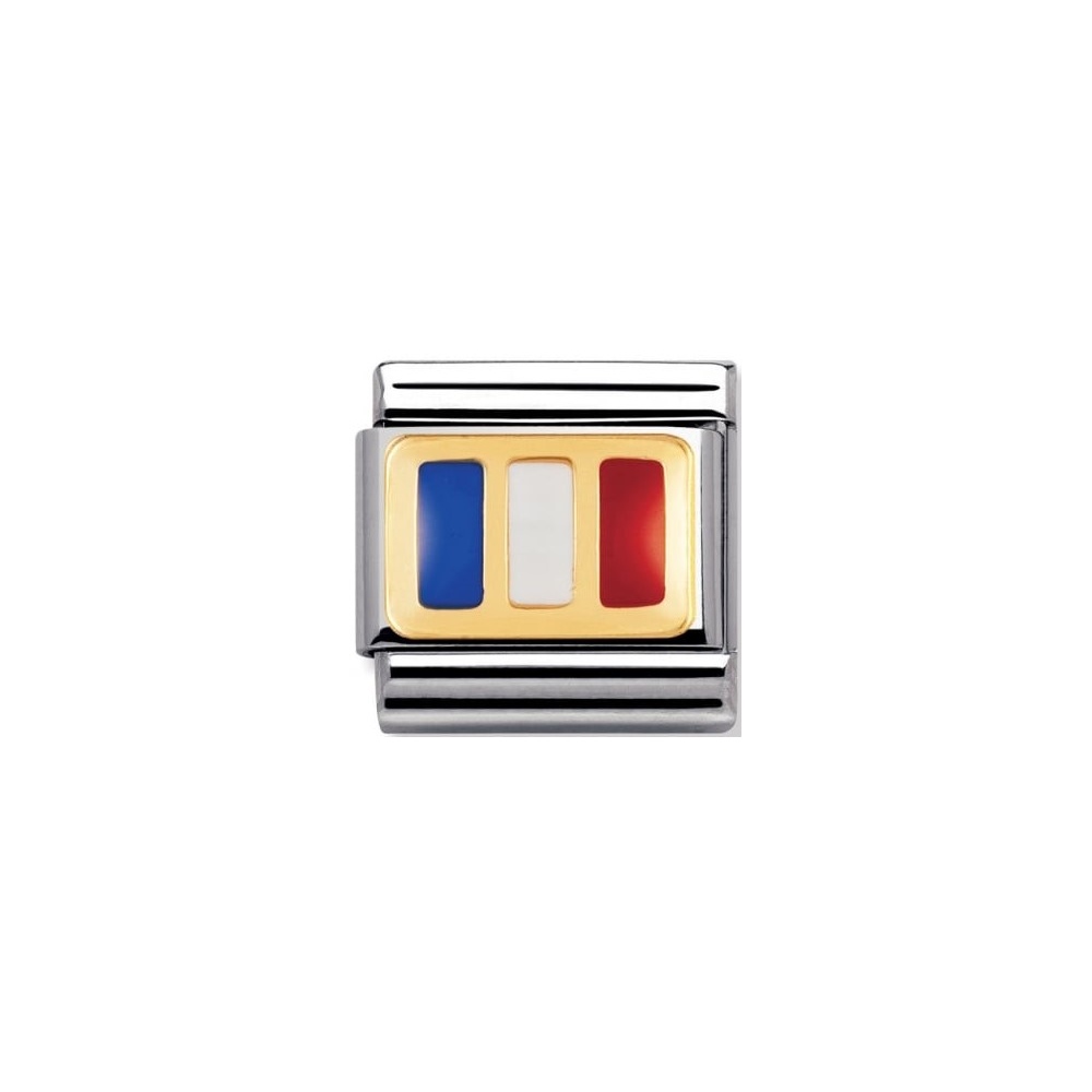 Oryginalny element do bransoletki komponowanej Nomination Composable Classic ze stali szlachetnej z francuską flagą z 18-karatowego złota i emalią.
