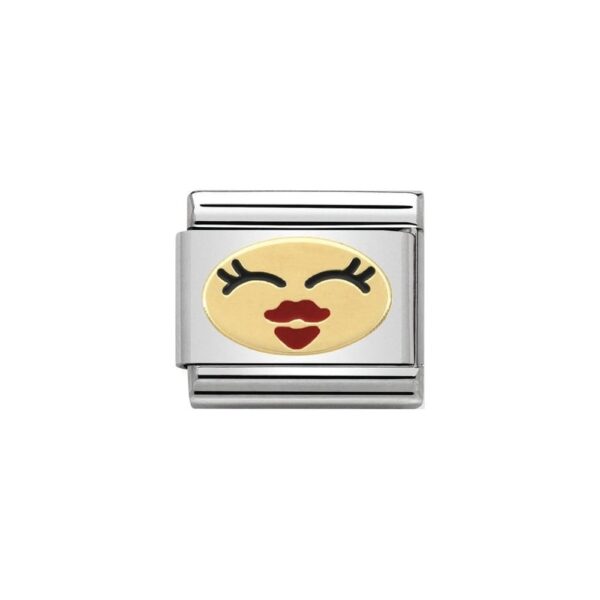 Oryginalny element do bransoletki komponowanej Nomination Composable Classic ze stali szlachetnej z buźka z czerwonymi ustami z 18-karatowego złota i emalią.