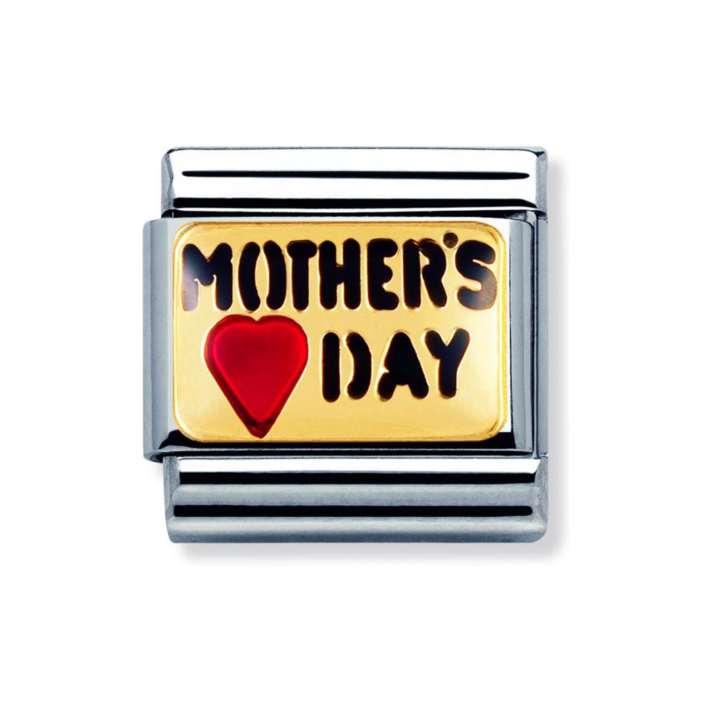 Oryginalny element do bransoletki komponowanej Nomination Composable Classic ze stali szlachetnej z napisem “Mother’s day” – Dzień Matki z 18-karatowego złota i emalią.