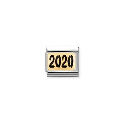Stylowy moduł do klasycznej komponowanej bransoletki Nomination wykonany ze stali szlachetnej z datą “2020” z 18-karatowego złota i czarnej emalii.