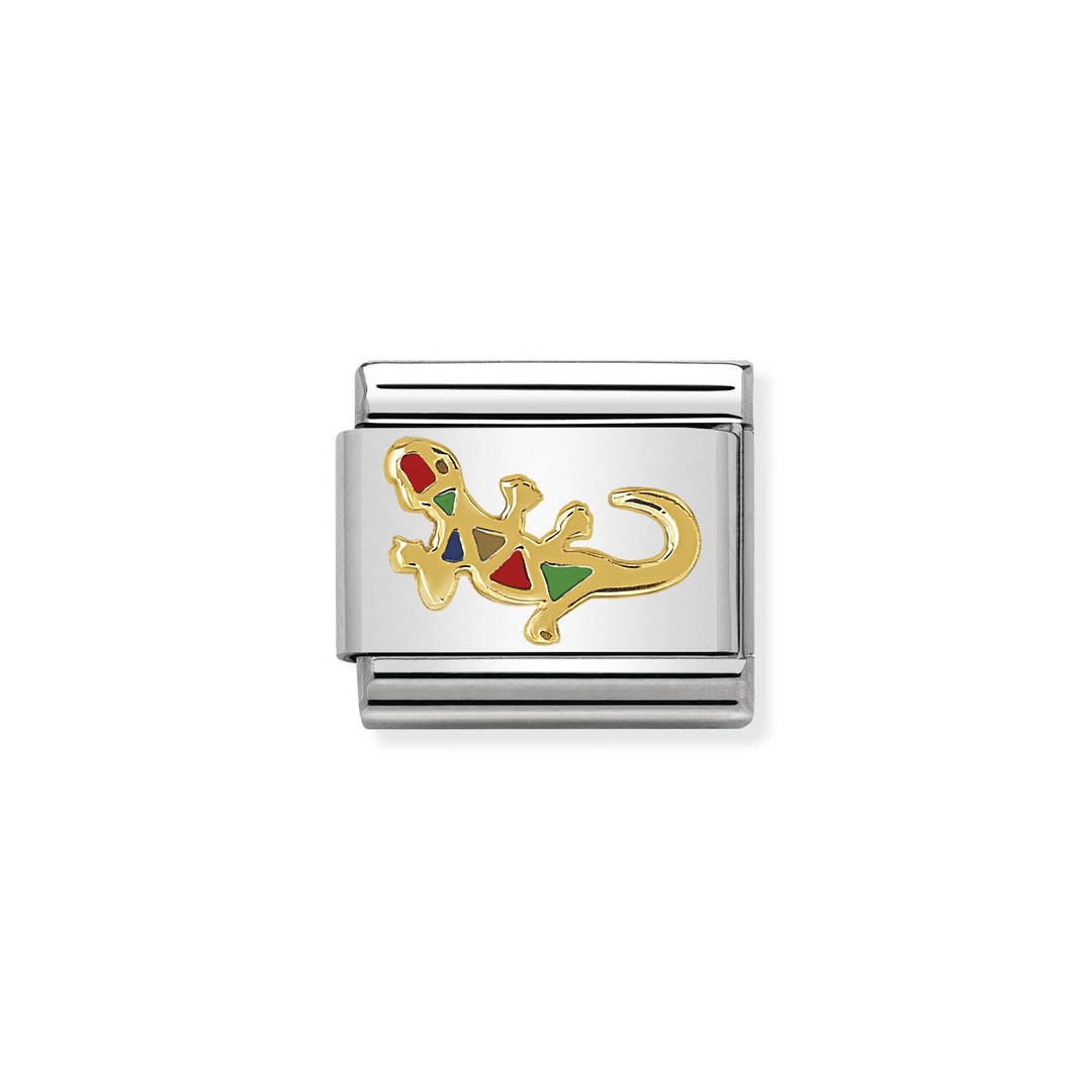Oryginalny element do bransoletki komponowanej Nomination Composable Classic ze stali szlachetnej z jaszczurką z 18-karatowego złota i emalią.