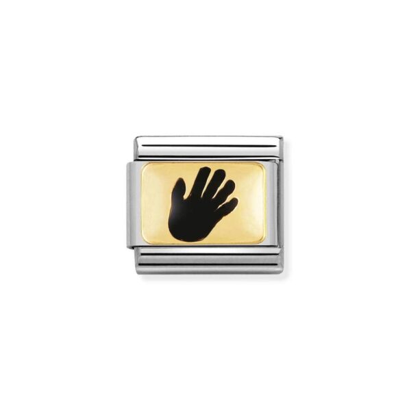 Oryginalny element do bransoletki komponowanej Nomination Composable Classic ze stali szlachetnej z symbolem czarnej ręki z 18-karatowego złota i emalią.