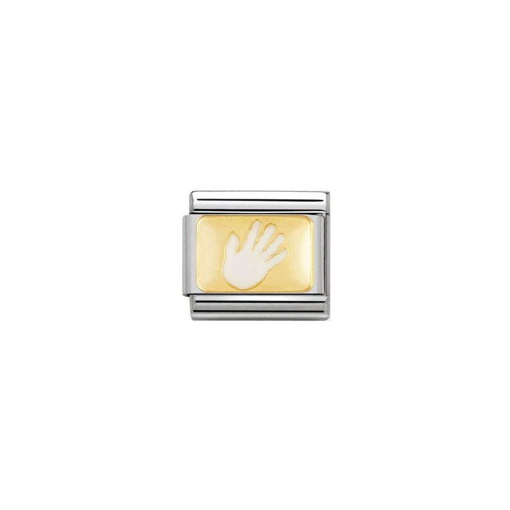 Oryginalny element do bransoletki komponowanej Nomination Composable Classic ze stali szlachetnej z symbolem białej ręki z 18-karatowego złota i emalią.