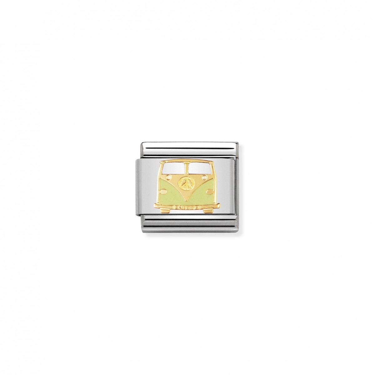 Oryginalny element do bransoletki komponowanej Nomination Composable Classic ze stali szlachetnej z camperem z 18-karatowego złota i emalią.