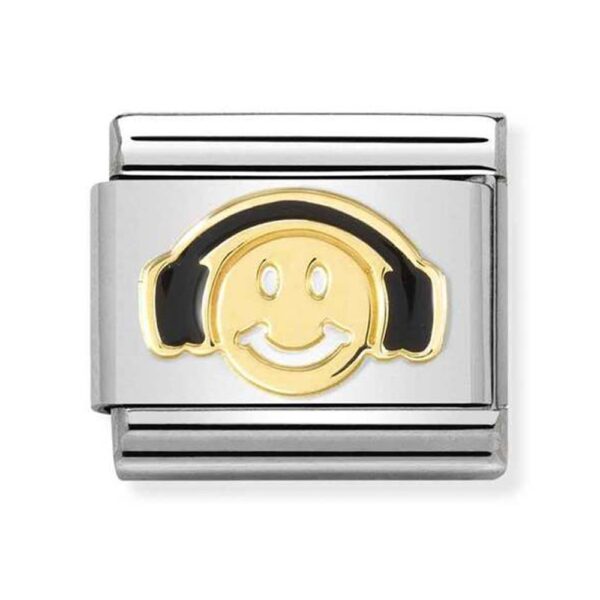 Oryginalny element do bransoletki komponowanej Nomination Composable Classic ze stali szlachetnej z uśmiechem z słuchawkami z 18-karatowego złota i emalią.