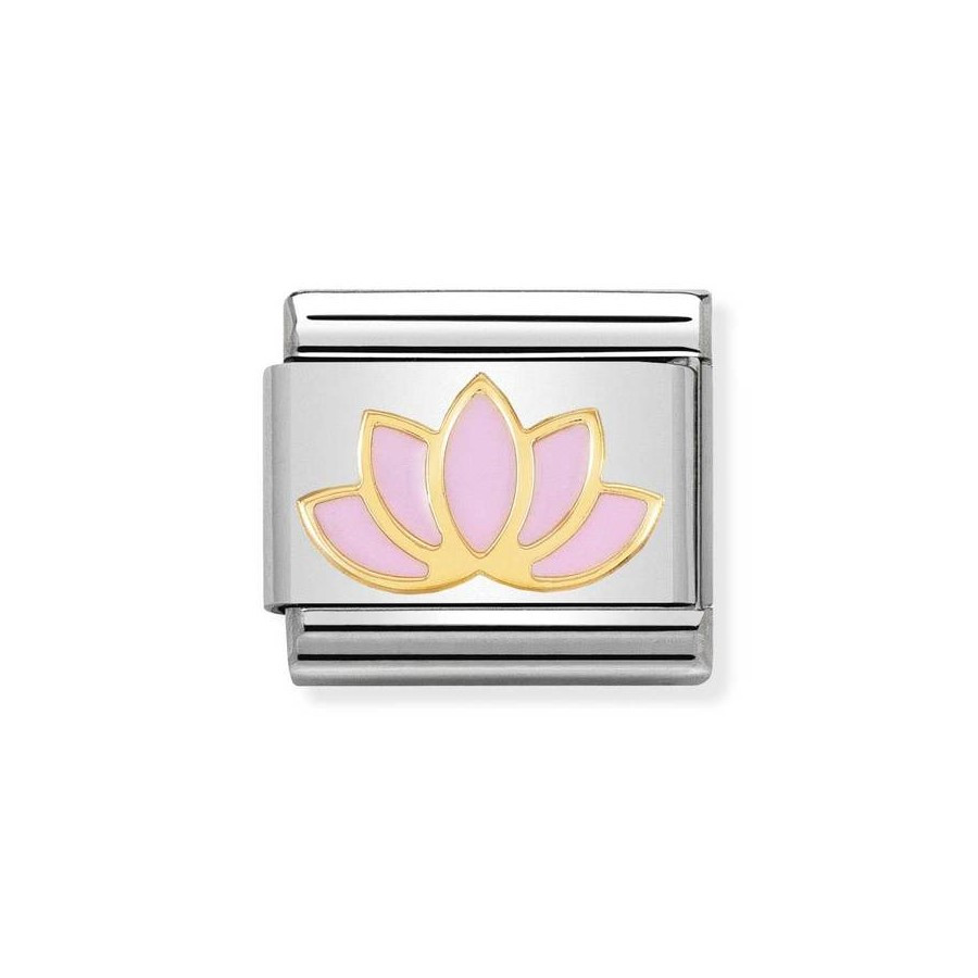 Oryginalny element do bransoletki komponowanej Nomination Composable Classic ze stali szlachetnej z kwiatem lotosu z 18-karatowego złota i emalią.