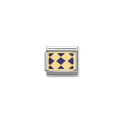 Moduł do klasycznej komponowanej bransoletki Nomination wykonany ze stali szlachetnej z rombami z 18-karatowego złota i emalii.