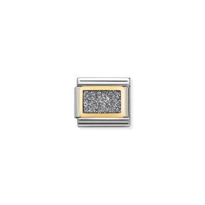 Moduł do klasycznej komponowanej bransoletki Nomination wykonany ze stali szlachetnej z brokatową srebrną płytką z 18-karatowego złota i emalii.