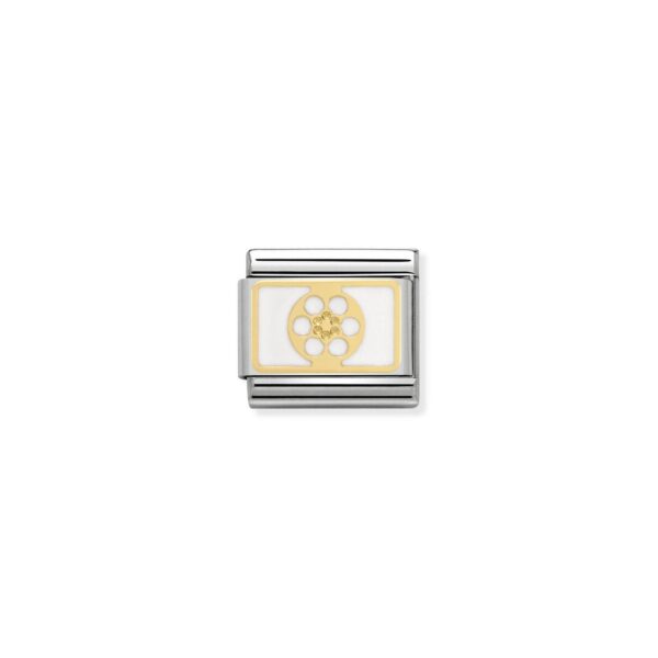 Moduł do klasycznej komponowanej bransoletki Nomination wykonany ze stali szlachetnej z kwiatem z 18-karatowego złota i białej emalii.