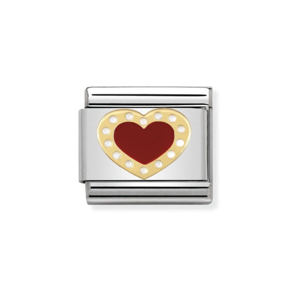 Moduł do klasycznej komponowanej bransoletki Nomination wykonany ze stali szlachetnej z czerwonym sercem z 18-karatowego złota i emalii.