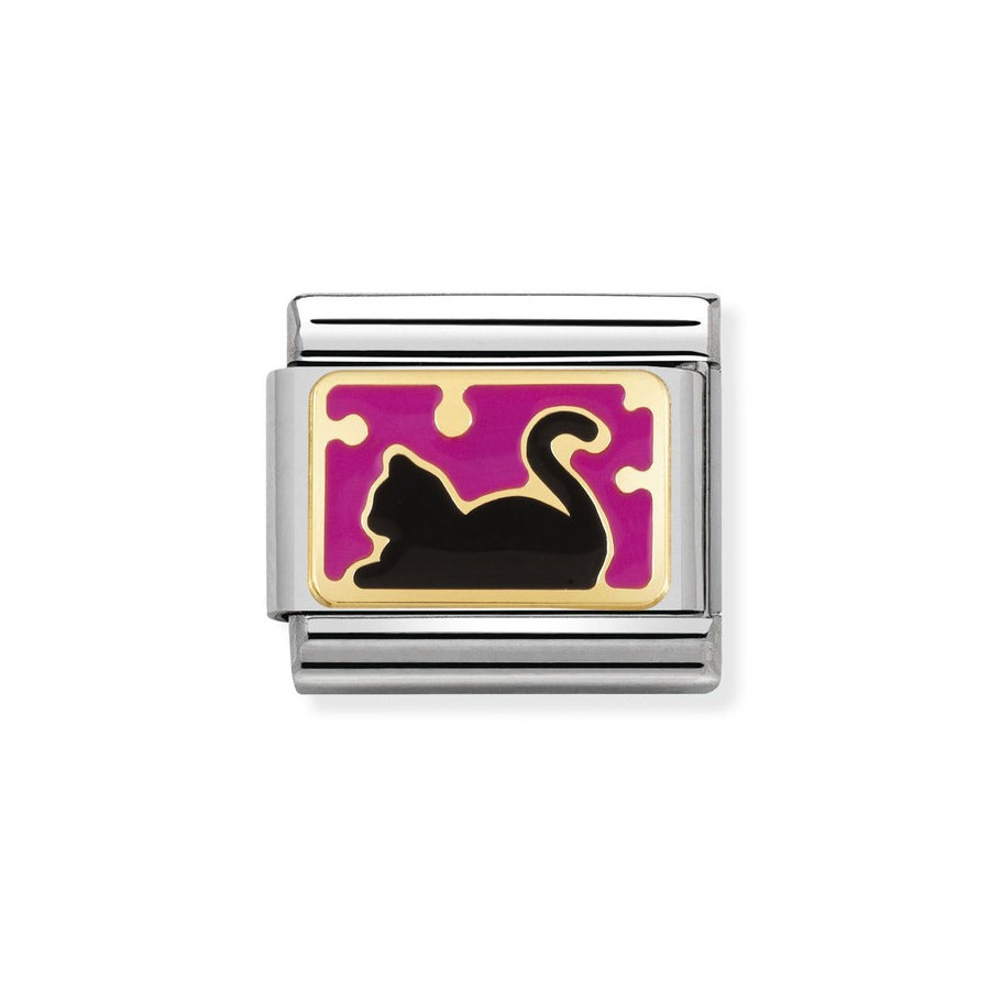 Moduł do klasycznej komponowanej bransoletki Nomination wykonany ze stali szlachetnej z czarnym kotkiem z 18-karatowego złota i emalii.