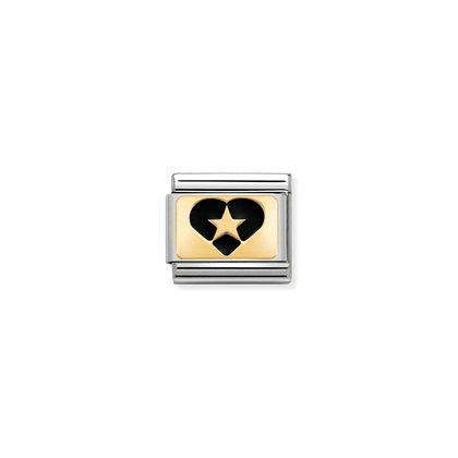 Moduł do klasycznej komponowanej bransoletki Nomination wykonany ze stali szlachetnej z czarnym serduszkiem z gwiazdką z 18-karatowego złota i emalii.