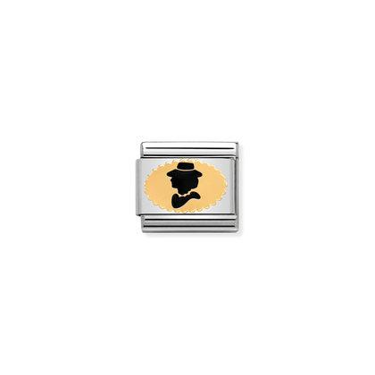 Moduł do klasycznej komponowanej bransoletki Nomination wykonany ze stali szlachetnej z postacią Madame- kobiety “damy”, która drzemie w każdej z nas, z 18-karatowego złota i emalii.