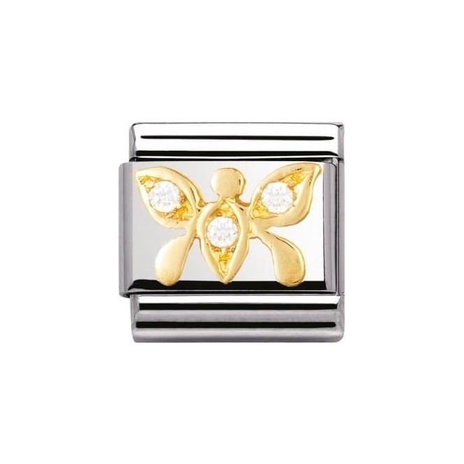 Moduł do klasycznej komponowanej bransoletki Nomination wykonany ze stali szlachetnej z motylem z cyrkoniami sześciennymi z 18-karatowego złota.