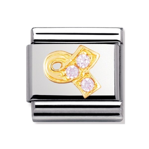 Moduł do klasycznej komponowanej bransoletki Nomination wykonany ze stali szlachetnej ze wstążką z cyrkoniami sześciennymi z 18-karatowego złota.