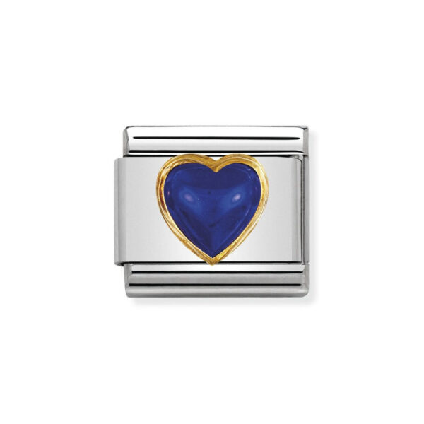 Moduł do klasycznej komponowanej bransoletki Nomination wykonany ze stali szlachetnej z sercem z lazurytu w oblamówce 18-karatowego złota.
