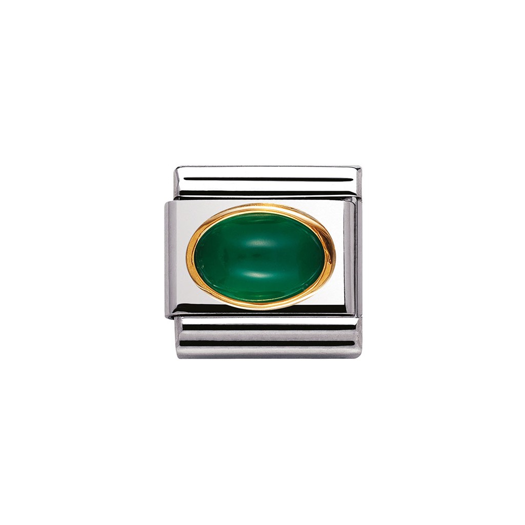 Moduł do klasycznej komponowanej bransoletki Nomination wykonany ze stali szlachetnej z zielonym agatem w oblamówce 18-karatowego złota.