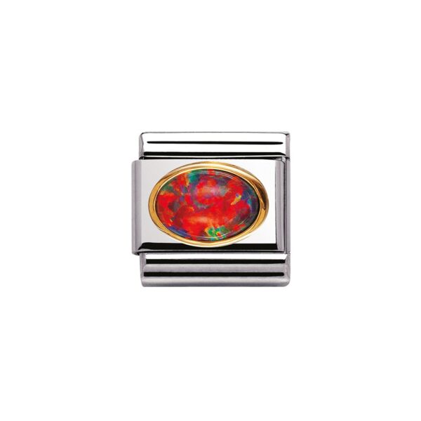 Moduł do klasycznej komponowanej bransoletki Nomination wykonany ze stali szlachetnej z czerwonym opalem w oblamówce 18-karatowego złota.