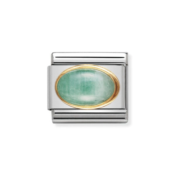 Moduł do klasycznej komponowanej bransoletki Nomination wykonany ze stali szlachetnej ze szmaragdem w oblamówce 18-karatowego złota.