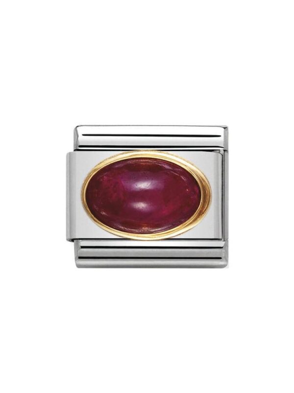 Moduł do klasycznej komponowanej bransoletki Nomination wykonany ze stali szlachetnej z rubinem w oblamówce 18-karatowego złota.